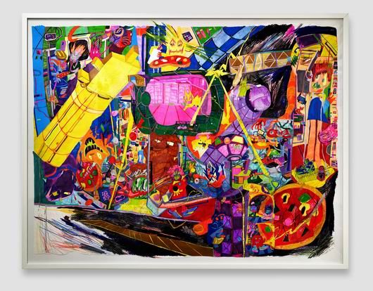 Ce dessin de Clara Cimelli donne à voir la désorien¬tation provoquée par l’impesanteur à l’intérieur d’une station spatiale. Dans cet espace saturé de couleurs et de détails, les habitants sont eux-mêmes atteints par la profusion et le désordre visuel qui perturbe cet univers supposé rationnel. La représentation de cet habitat diffusée par la culture scientifique et les œuvres de science-fiction se trouve bouleversée par la prolifération joyeuse de ceux qui y vivent.